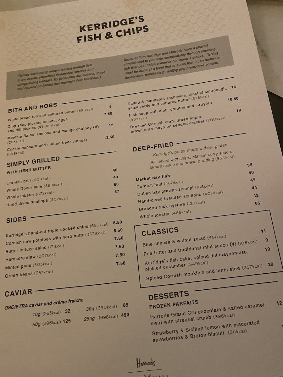 Welcome to Kerridge's Fish & Chips, a culinary gem nestled within Harrods, London. This delightful establishment elevates the classic British fish and chips experience to new heights. Their menu features a stunning array of deep-fried options, including the exquisite Native Lobster (£55.00) and Hand-Dived Scallops (£44.00), that tantalize the taste buds with fresh, flavorful ingredients. The generous portions, although categorized as traditional, are anything but ordinary.